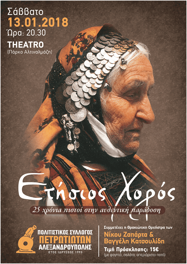 Read moreDetailsΟ «Πολιτιστικός Σύλλογος Πετρωτιωτών Αλεξανδρούπολης» και οι Πετρωτιώτες, πιστοί στην αυθεντική Παράδοση γιορτάζουμε 25 χρόνια πολιτισμού, Κοινωνικής και Οικονομικής Προσφοράς...
