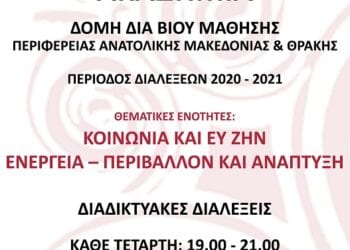 Read moreDetailsΗ θεματολογία των διαλέξεων που παρουσιάζονται διαδικτυακά αυτή την Τετάρτη, 3 Μαρτίου 2021, στην ΑΚΑΔΗΜΙΑ – Δομή Δια Βίου Μάθησης...