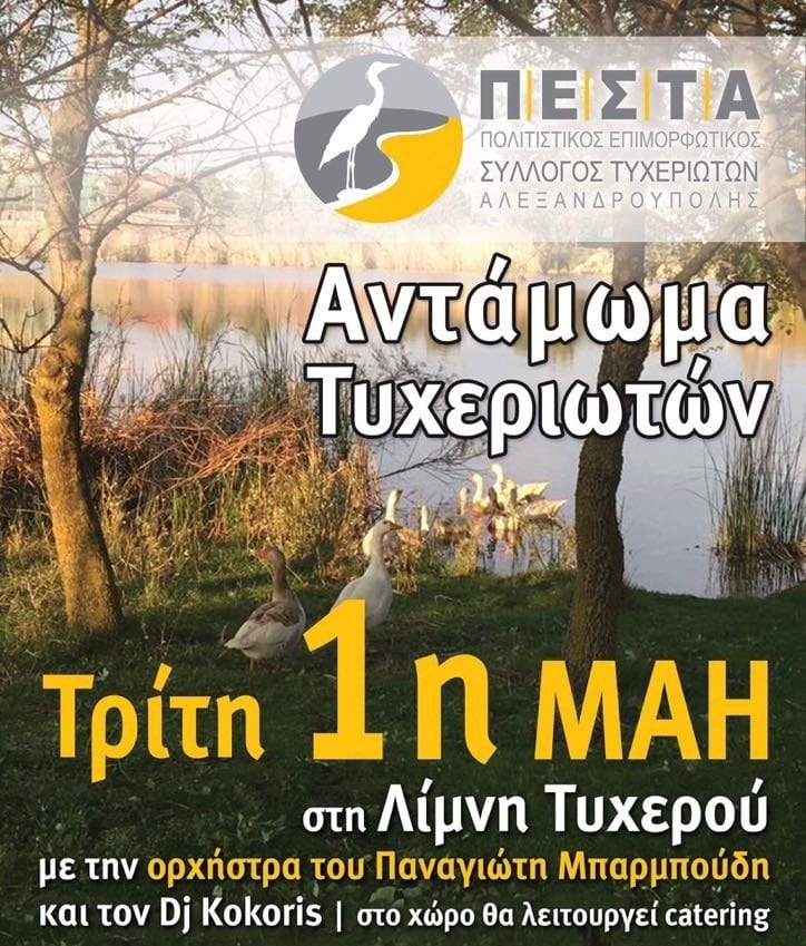 Read moreDetailsΤο Αντάμωμα Τυχεριωτών θα πραγματοποιηθεί την 1η Μαΐου 2018 σε ένα από τα ομορφότερα σημεία του Έβρου, στη Λίμνη Τυχερού....