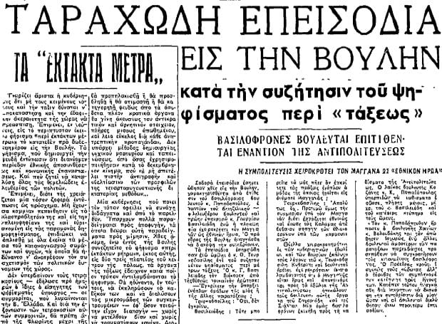 1946: Ψηφίζεται στη Βουλή των Ελλήνων το Γ’ Ψήφισμα «Περί Εκτάκτων Μέτρων», που προβλέπει την ποινή του θανάτου «κατά των επιβουλευομένων την δημοσίαν τάξιν και την ακεραιότηταν του κράτους», δηλαδή των κομμουνιστών.