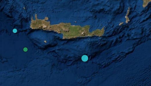 Ο σεισμός έγινε σε απόσταση 428 χλμ. νότια/νοτιοανατολικά της Αθήνας. Το επίκεντρο της δόνησης εντοπίζεται στον θαλάσσιο χώρο 65 χλμ νότια της Άρβης στην Κρήτη.