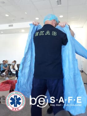 Υπενθυμίζουμε πως το πρόγραμμα ελέγχου ετοιμότητας, εκπαίδευσης & ασκήσεων με το κωδικό όνομα «ΕΚΑΒ be S.A.F.E.» (Stay Alert Fully Educated), απευθύνεται (κατά κύριο λόγο) στα υγειονομικά στελέχη των νησιών (νησιά που διαθέτουν Νοσοκομεία και κυρίως Κέντρα Υγείας ή Πολυδύναμα Περιφερειακά Ιατρεία) αλλά και στα στελέχη των κατά τόπους εμπλεκόμενων υπηρεσιών για την πραγματοποίηση αεροδιακομιδών αλλά και πλωτών διακομιδών (Λιμενικό Σώμα – Ελληνική Ακτοφυλακή). Ο βασικός στόχος του συγκεκριμένου προγράμματος, είναι να διασφαλιστεί τόσο η ετοιμότητα όσο και η επάρκεια των γνώσεων όλων των Υγειονομικών στελεχών , των στελεχών του Λιμενικού καθώς και των εμπλεκόμενων στελεχών της Περιφερειακής ή και Τοπικής Αυτοδιοίκησης κλπ, σχετικά με την τήρηση των ατομικών μέτρων προστασίας αλλά και στην παροχή επείγουσας προνοσοκομειακής φροντίδας (ανά περίπτωση) για την υποστήριξη των ζωτικών λειτουργιών των ασθενών κατά το χρονικό στάδιο πριν την ασφαλή διακομιδή ενός ύποπτου ή επιβεβαιωμένου περιστατικού SARS-CoV-2, σε κάποιο ορισμένο Νοσοκομείο Αναφοράς Covid-19.