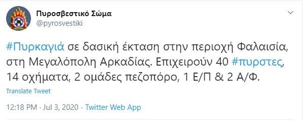 Φωτιά ξέσπασε σε δασική έκταση στην περιοχή Φαλαισία, στη Μεγαλόπολη Αρκαδίας.