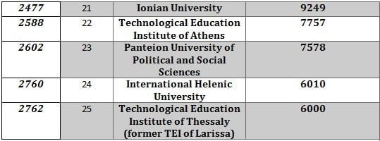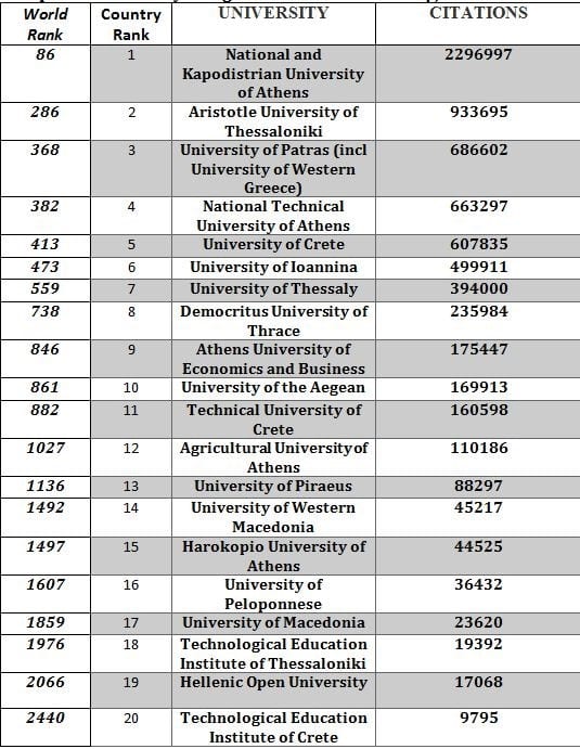 Πίνακας 1: Κατάταξη Ελληνικών Πανεπιστημίων στον πίνακα