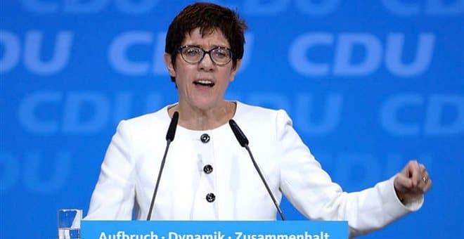 Η υπουργός Άμυνας της Γερμανίας Άνεγκρετ Κραμπ-Καρενμπάουερ, πριν λίγο επανέλαβε ότι με παρέμβαση της Καγκελαρίου Άγγελα Μέρκελ αποκλιμακώθηκε η ένταση μεταξύ Ελλάδας και Τουρκίας, κάνοντας λόγο για «μεγάλη εμπιστοσύνη» που απολαμβάνει η ομοσπονδιακή κυβέρνηση και στις δύο πλευρές.
