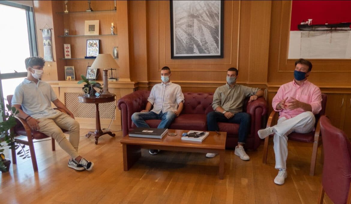 Ο Δήμαρχος αφού συνεχάρη τους αθλητές για τις επιτυχίες και τις διακρίσεις που απέσπασαν στα πανελλήνια πρωταθλήματα Κ18 και Κ20 που πραγματοποιήθηκαν στη Λάρισα στις 25-26 Ιουλίου και στα Ιωάννινα στις 1-2 Αυγούστου αντίστοιχα, συνομίλησε για αρκετή ώρα με τους ίδιους και τον προπονητή τους. Συζήτησαν για το πρόγραμμα των προπονήσεών τους, τις τεχνικές δυσκολίες που αντιμετωπίζουν στους υπάρχοντες αθλητικούς χώρους και συμφώνησαν σε μια σειρά ενεργειών ώστε να βελτιωθούν κατά το δυνατόν οι συνθήκες άθλησής τους.