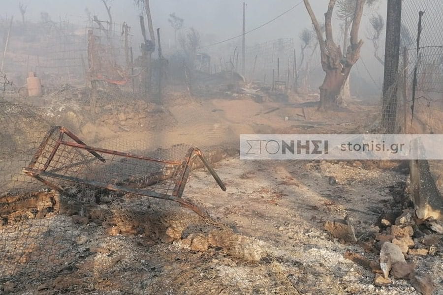 Το φως της ημέρας δείχνει το μέγεθος της καταστροφής του καταυλισμού. Το σύνολο του εκτός του ΚΥΤ μέρους έχει καταστραφεί ολοκληρωτικά, ενώ έχει καταστραφεί και μεγάλο μέρος του εντός του ΚΥΤ καταυλισμού που συνεχίζει να καίγεται. Πληροφορίες αναφέρουν ότι δεν κάηκαν οι υποδομές διοίκησης και ταυτοποίησης, κάηκε όμως ολοσχερώς η Υπηρεσία Ασύλου και ο εξοπλισμός της. Επίσης, ζημιές υπήρξαν στον χώρο της Μονάδας Εντατικής Θεραπείας και της Μονάδας Αυξημένης Φροντίδας και στον κλιματισμό της υγειονομικής μονάδας που φτιάχτηκε με δωρεά της ολλανδικής Κυβέρνησης.