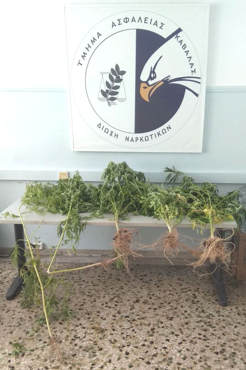 Στη δεύτερη περίπτωση, χθες το μεσημέρι, σε οικισμό της Καβάλας, αστυνομικοί της Ομάδας Δίωξης Ναρκωτικών του Τμήματος Ασφάλειας Καβάλας συνέλαβαν τον δεύτερο ημεδαπό, διότι τον εντόπισαν να καλλιεργεί στον αύλειο χώρο της οικίας του πέντε (5) φυτά κάνναβης, ύψους από 50 εκατοστά έως 2,5 μέτρα.