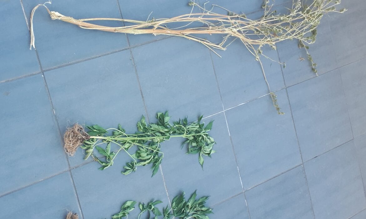 Κατασχέθηκαν 13 φυτά κάνναβης και μικροποσότητα ακατέργαστης κάνναβης.