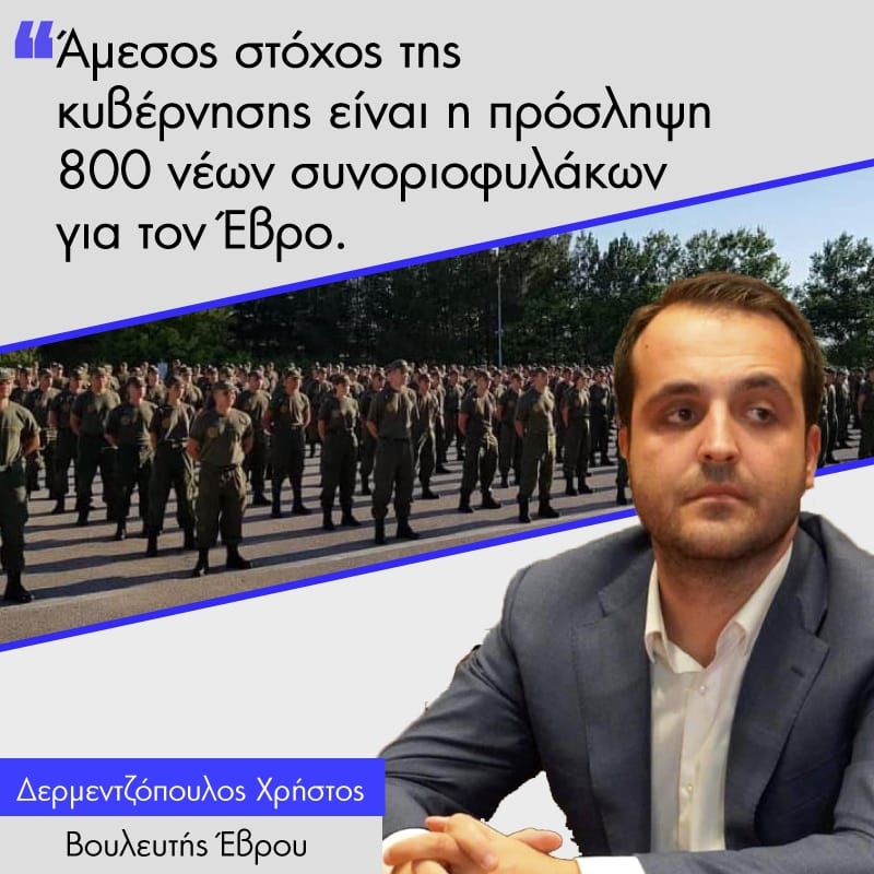 Δήλωση του Βουλευτή Έβρου κ. Χρήστου Δερμεντζόπουλου. «Από την πρώτη στιγμή και με την ολοκλήρωση της προηγούμενης προκήρυξης των 400 συνοριοφυλάκων, είχα