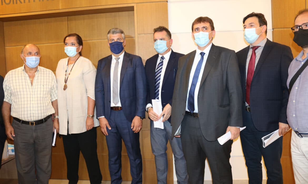 Τον κο Τοψίδη πλαισίωσαν, συνεπικουρώντας και στην παρουσίαση, ο Πρόεδρος του Συνδέσμου Ξενοδόχων Θράκης Απόστολος Παλακίδης, ο Πρόεδρος του Συνδέσμου Βιομηχάνων και Βιοτεχνών Έβρου Χρήστος Γιορδαμλής, ο Πρόεδρος της ΟΕΒΕΣΕ Τριαντάφυλλος Χατζάκης, ο Αντιπρόεδρος του Εμπορικού Συλλόγου Αλεξανδρούπολης Βασίλης Κασαπίδης, ο Πρόεδρος του Συλλόγου Επαγγελματιών Σαμοθράκης Γιάννης Γλήνιας και ο εκπρόσωπος του Σωματείου Καταστημάτων Υγειονομικού Ενδιαφέροντος και Συναφών Επαγγελμάτων Αργύρης Κεσετζής.