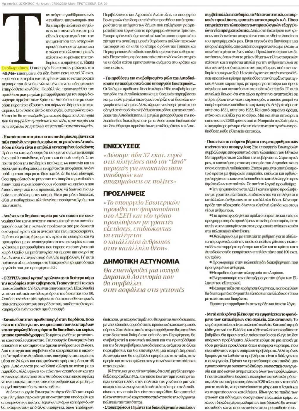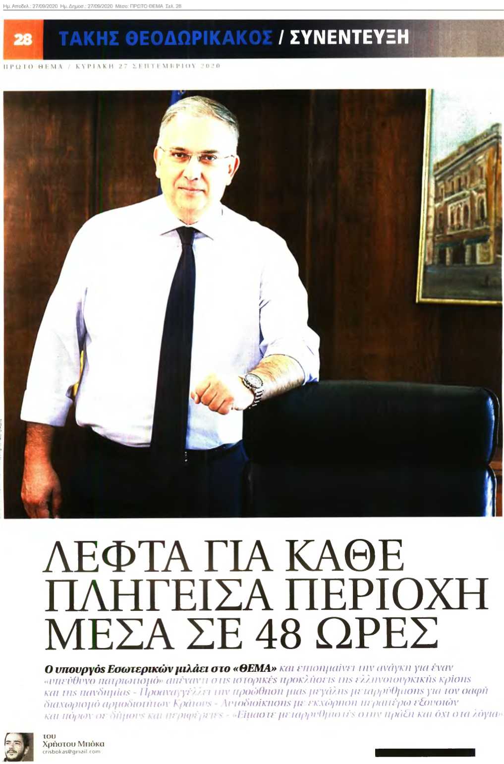 Ολόκληρη η συνέντευξη του υπουργού Εσωτερικών Τάκη Θεοδωρικάκου στο «Πρώτο Θέμα», στον δημοσιογράφο Χρήστο Μπόκα