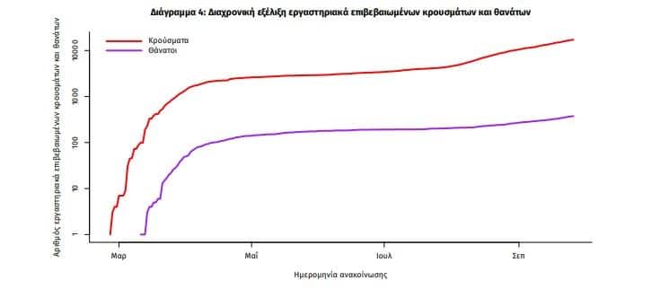 Δείτε το γράφημα από τον ΕΟΔΥ που δείχνει την εξέλιξη των θανάτων και των επιβεβαιωμένων κρουσμάτων κορονοϊού στη χώρα μας, από την έναρξη της πανδημίας, τον Μάρτιο.