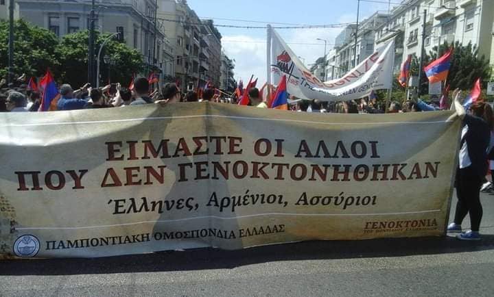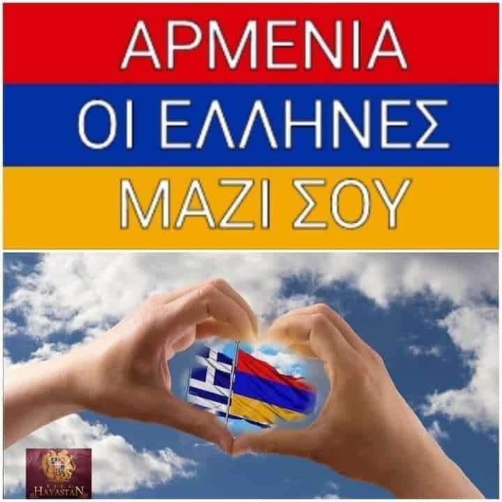 Έλληνες και Αρμένιοι διαδηλώνουν κατά της εγκληματικής συμμορίας Ερντογάν-Αλίεφ. Έλληνες και Αρμένιοι έχουμε νιώσει στο πετσί μας την τουρκική βαρβαρότητα, θύματα εγκλημάτων που αναγνώρισε η διεθνής κοινότητα και αυτές τις στιγμές είμαστε ενωμένοι σαν μια γροθιά.