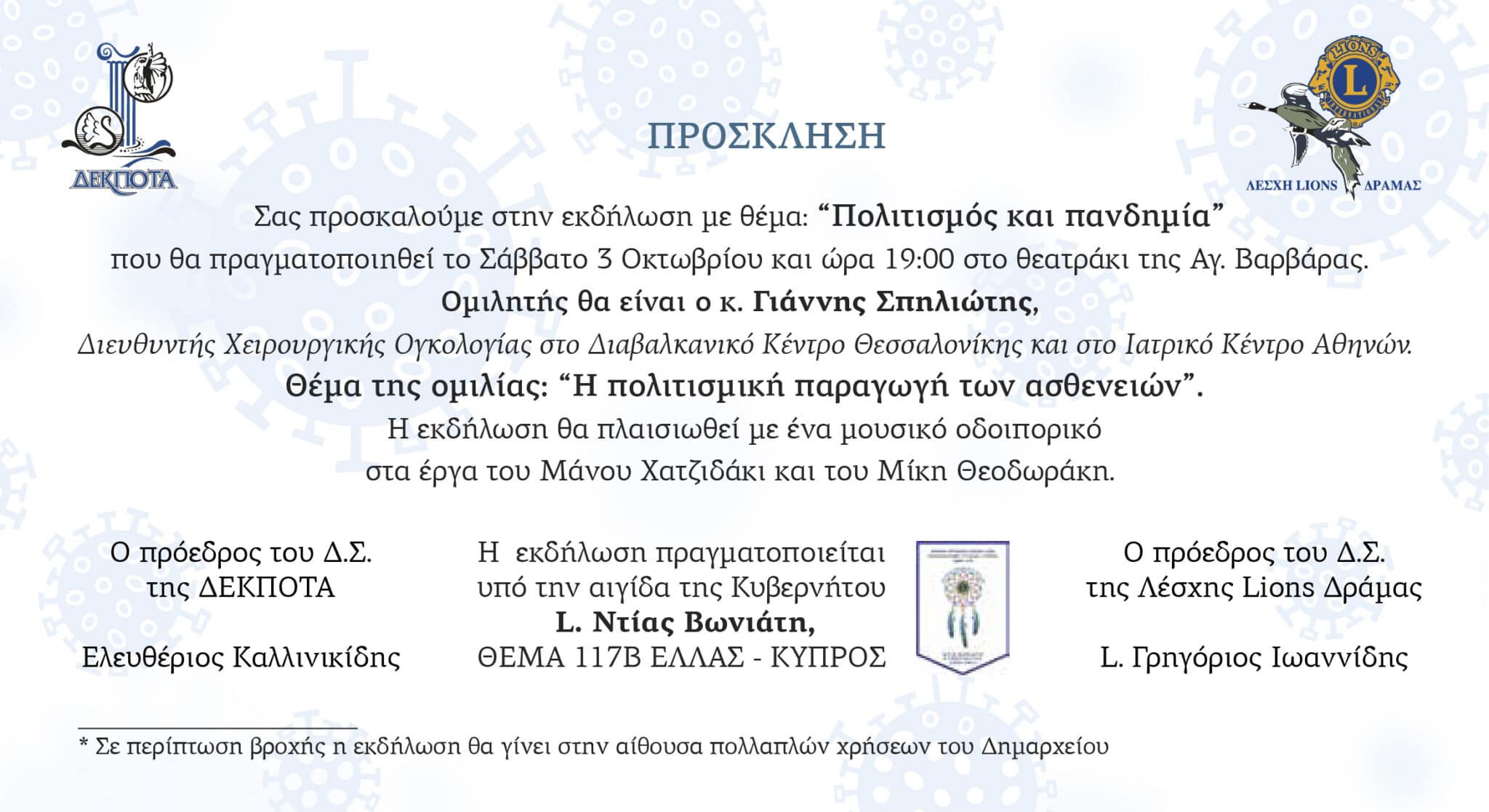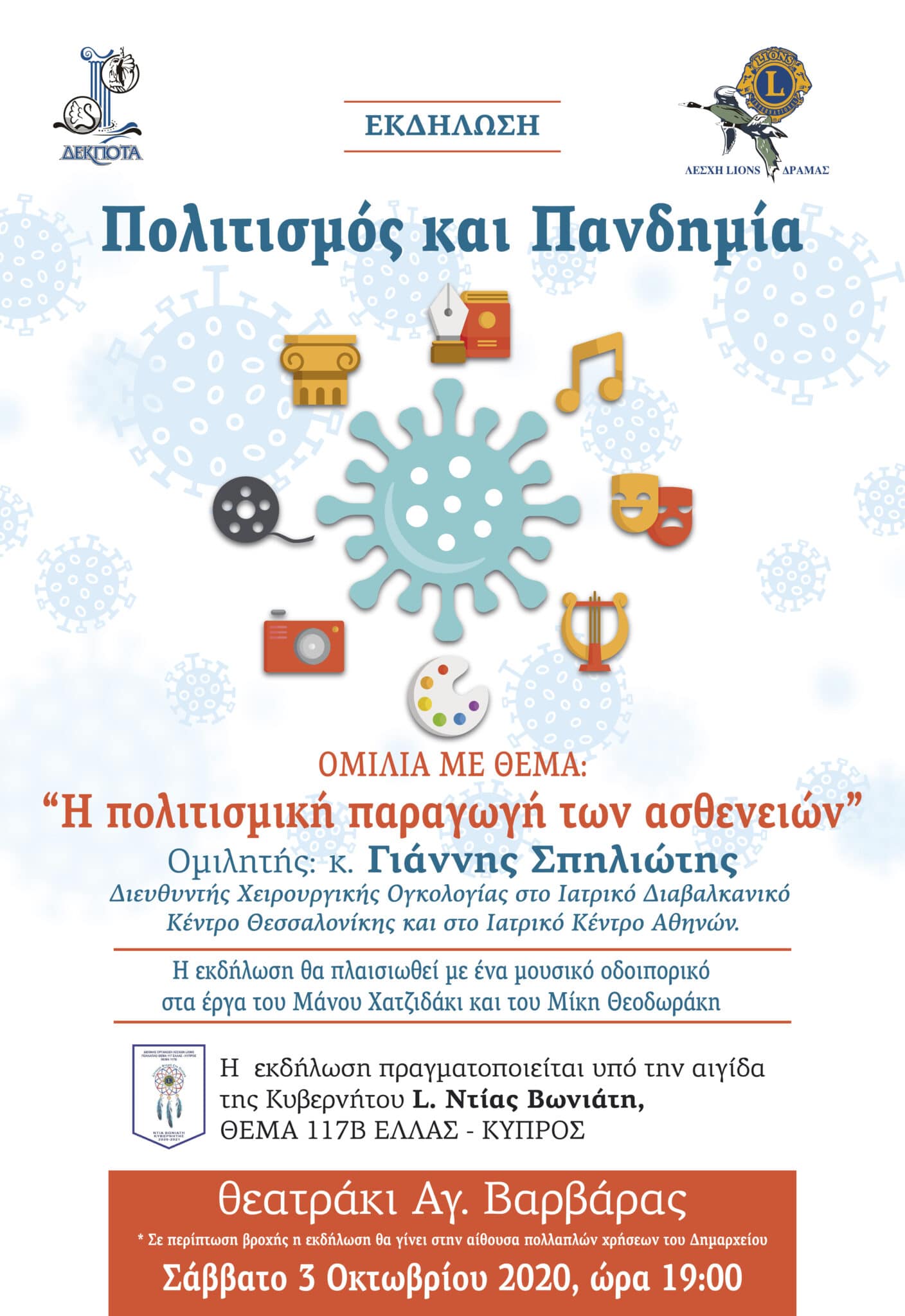 ΔΕΚΠΟΤΑ: ΠΟΛΙΤΙΣΜΟΣ ΚΑΙ ΠΑΝΔΗΜΙΑ – Η πολιτισμική παραγωγή των ασθενειών
