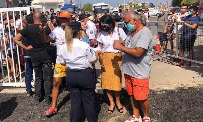 Μεταξύ των ανθρώπων που βρίσκονταν έξω από το σημείο εισόδου ήταν και κάποιοι που είχαν τυλιχθεί την τουρκική σημαία ή την κρατούσαν, όπως και την σημαία του ψευδοκράτους.