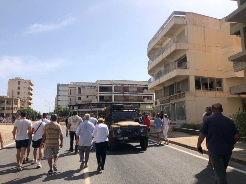 Στην λεωφόρο Δημοκρατίας, που έχει ασφαλτοστρωθεί (!) για διέλευση οχημάτων και πεζών από και προς το τμήμα της παραλίας της Αμμοχώστου όπου επιτρέπεται η πρόσβαση πολιτών, έχει τοποθετηθεί φυλάκιο της «αστυνομίας» που επανδρώνεται από ψευδοαστυνομικούς με πολιτική ενδυμασία.