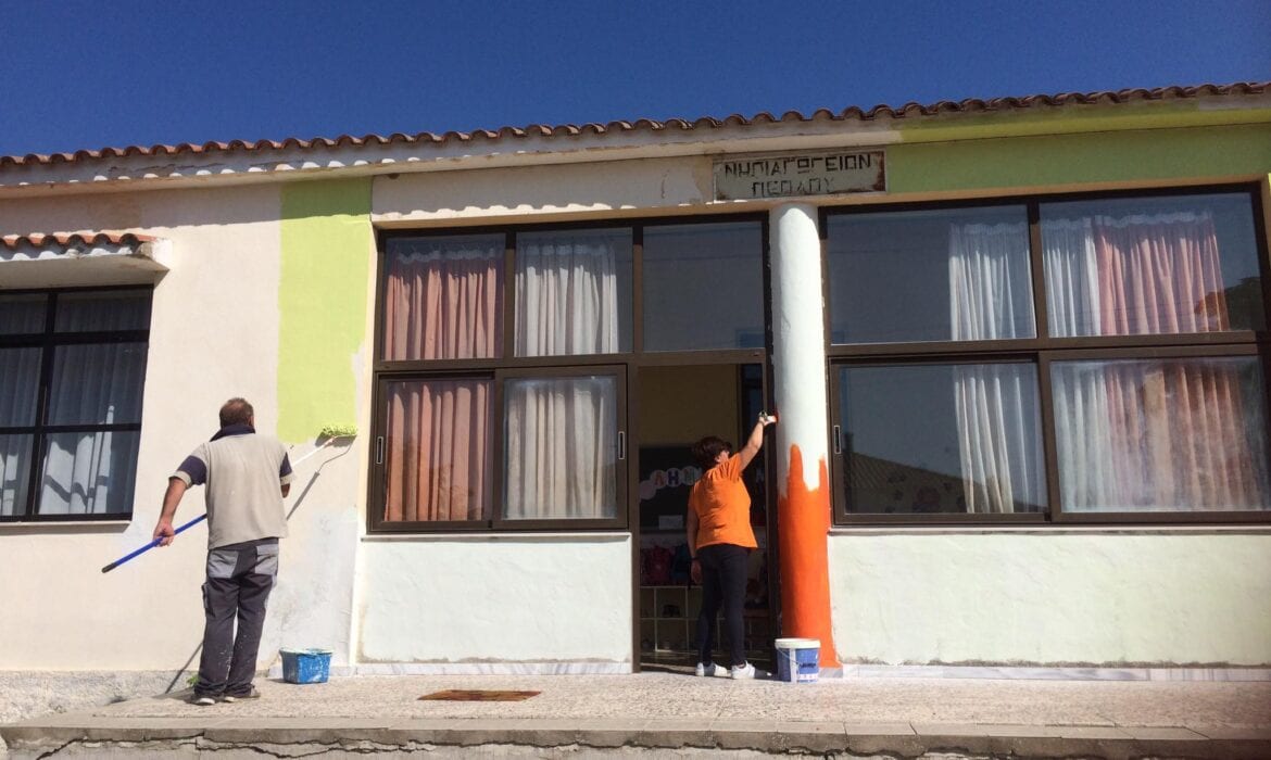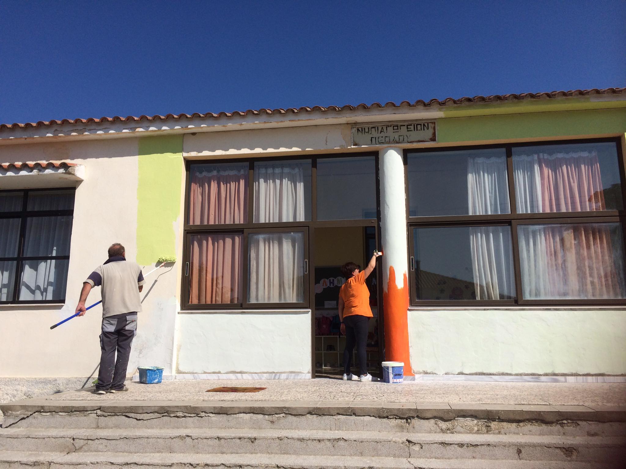 Χάρη στον αξιοζήλευτο ζήλο της νηπιαγωγού κας Χρυσάνθης Μπαξεβάνη και το ενδιαφέρον του Δημάρχου Γιάννη Ζαμπούκη και του αντιδημάρχου Φερών Δημήτρη Κολγιώνη, οι γονείς των παιδιών του νηπιαγωγείου και ο Πολιτιστικός Σύλλογος Πέπλου συνένωσαν τις δυνάμεις τους με τους υπαλλήλους της Δημοτικής Ενότητας Φερών και προχώρησαν σε σημαντικές παρεμβάσεις, αλλάζοντας εξολοκλήρου την εικόνα του σχολικού κτιρίου.