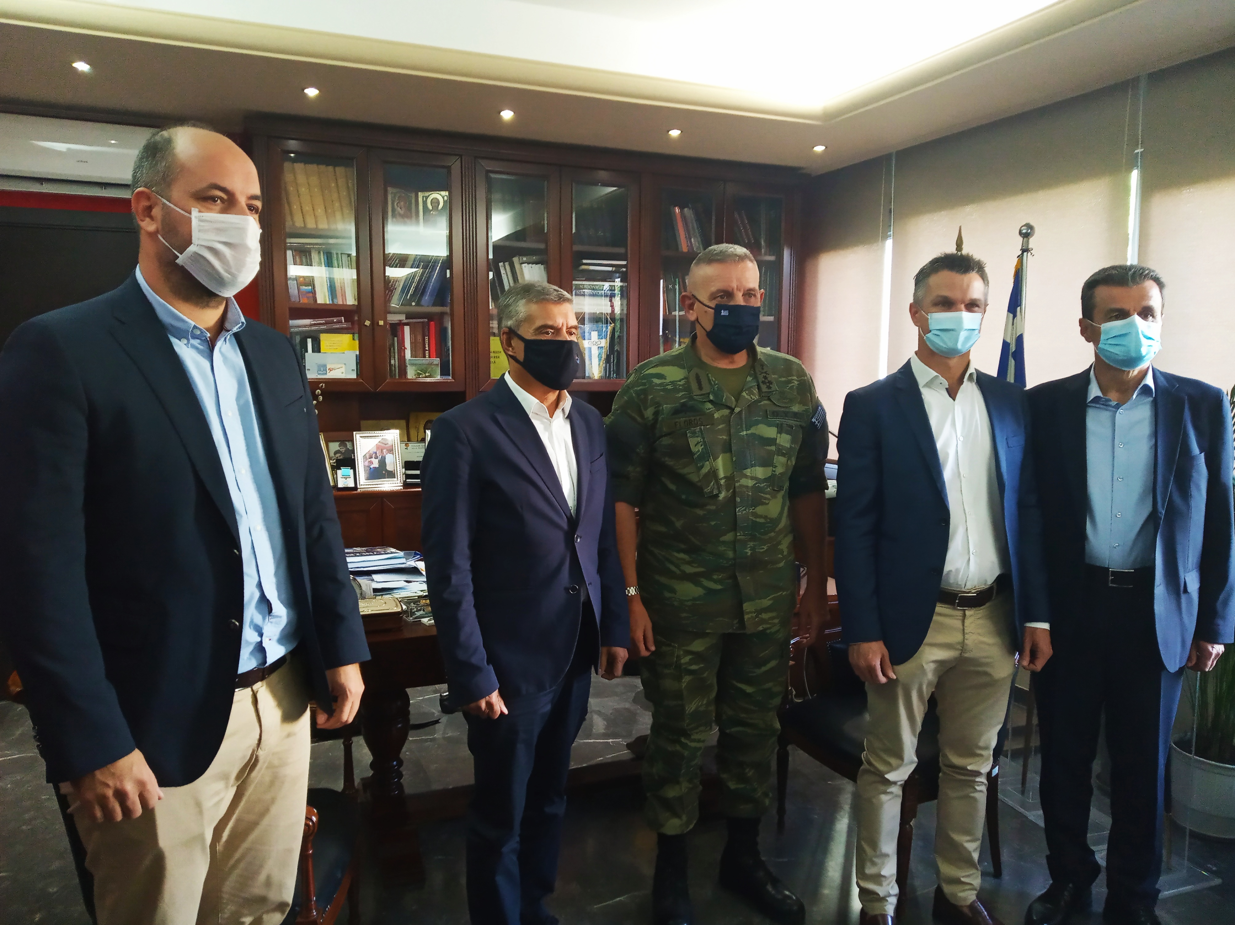 «Είναι μεγάλη τιμή και χαρά που μας επισκέπτεται ο Αρχηγός ΓΕΕΘΑ, με τον οποίο έχουμε συνεργαστεί δημιουργικά, από την εποχή που ήταν διοικητής στην 1η Στρατιά» είπε μεταξύ άλλων ο κ. Αγοραστός ενώ μιλώντας για το επίπεδο της συνεργασίας σημείωσε ότι «κάνουμε πολλά έργα τα οποία συνεχίζονται όπως είναι η ενεργειακή αναβάθμιση της 1ης Στρατιάς, η ενεργειακή αναβάθμιση του 404 Στρατιωτικού Νοσοκομείου, η προμήθεια μηχανημάτων Μηχανικού και η αποκατάσταση του Ιερού Ναού Μεταμόρφωσης του Σωτήρος. Μάλιστα τα έργα ενεργειακής αναβάθμισης του Στρατιωτικού Νοσοκομείου και της 1ης Στρατιάς έχουν επιλεγεί στα 200 καλύτερα «πράσινα» έργα του Ευρωπαϊκού Green Deal».