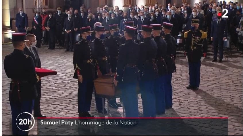 Συγκλονισμένη είναι διεθνής κοινότητα από το αποτρόπαιο έγκλημα στην Γαλλία , με τον αποκεφαλισμό του καθηγητή Σαμουέλ Πατί, από τον 18χρονο φανατικό ισλαμιστή στο όνομα του Μωάμεθ. Σε άκρως συναισθηματική φόρτιση πραγματοποιήθηκε στη Σορβόννη, τελετή στη μνήμη του αδικοχαμένου καθηγητή, θύμα των ακραίων κύκλων που απειλούν την ευρωπαϊκή συνοχή, με την παρουσία του Γάλλου Προέδρου Εμμανουέλ Μακρόν, ο οποίος απένειμε μετά θάνατον τη Λεγεώνα της τιμής στον εκ τελεσθέντα.