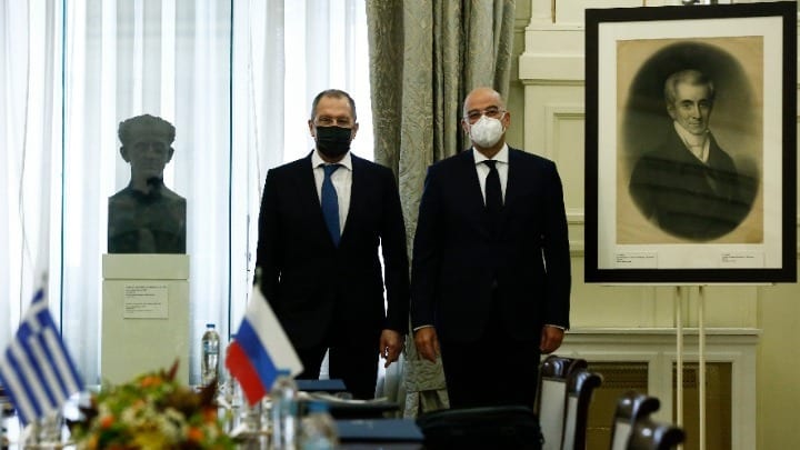 Σε θετικό κλίμα πραγματοποιήθηκε στο Υπουργείο Εξωτερικών η συνάντηση του Ρώσου Υπουργού Εξωτερικών Σεργκέι Λαβρόφ, με τον Έλληνα ομόλογο του Νίκο Δένδια. Ο Έλληνας ΥΠΕΞ ενημέρωσε τον Ρώσο ομόλογο του για τις τουρκικές προκλήσεις στην Ανατολική Μεσόγειο, που οδηγούν σε κλίμα αποσταθεροποίησης με τις νεο-οθωμανικές της βλέψεις.