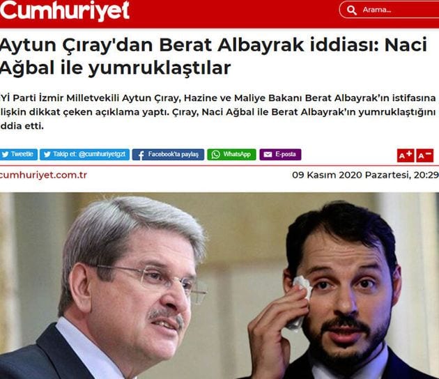 Ο πρόεδρος της Τουρκίας κάλεσε τον Αλμπαϊράκ, στο προεδρικό μέγαρο για εξηγήσεις, ο οποίος ήταν εξοργισμένος με τον νέο κεντρικό τραπεζίτη, με αποτέλεσμα στην έξοδο του προεδρικού μεγάρου να πιαστούν στα χέρια! Σημειώνεται ότι οι σχέσεις των δύο ανδρών δεν ήταν καλές. Ο Αγκμπάλ διετέλεσε υπουργός Οικονομικών από το 2015 έως το 2018, και ο Αλμπαϊράκ είχε καρατομήσει όλους τους συνεργάτες του όταν τον διαδέχθηκε.