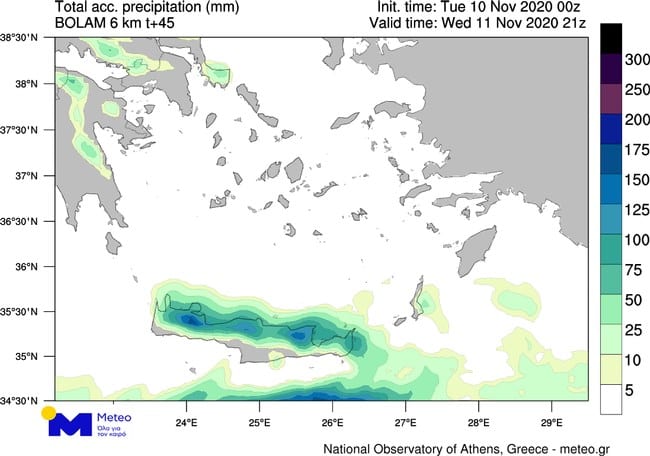 Στον πίνακα παρουσιάζονται τα οκτώ μεγαλύτερα ύψη βροχόπτωσης στο νησί, σύμφωνα με το Μετεωρολογικό και Υδρολογικό Παρατηρητήριο Κρήτης, έως τις 09:00 το πρωί.