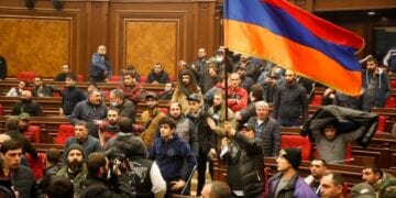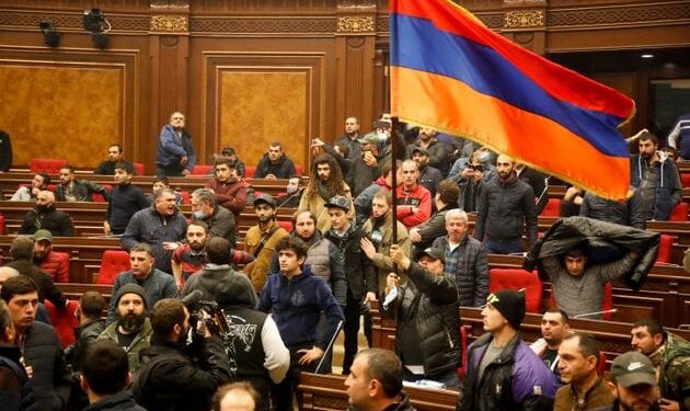 Στο στόχαστρο ο πρωθυπουργός Νικόλ Πασινιάν, με τους συγκεντρωμένους να τον κατηγορούν για προδοσία.