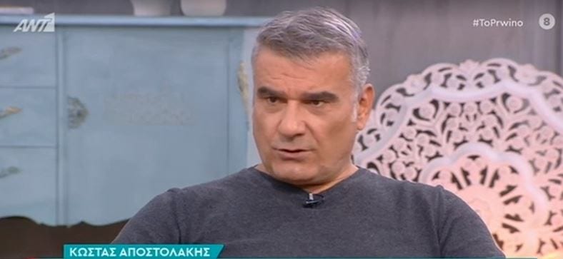 Και πρόσθεσε ο Κώστας Αποστολάκης: «Είναι σαν να αυτοτιμωρείσαι, σαν να μαστιγώνεις τον εαυτό σου και να τον τιμωρείς υπαρξιακά. Ετίθετο θέμα να επιβιώσω, να βγω πιο μπροστά από άλλους, υπήρχε ανταγωνισμός. Δεν φερόμουν άσχημα σε άλλους, αλλά στον εαυτό μου, αυτοπιεζόμουν. Αλλά είναι νομοτέλεια ότι αν φέρεσαι άσχημα στον εαυτό σου δεν θα φερθείς όπως πρέπει στους άλλους» και πρόσθεσε ότι έπινε ένα μπουκάλι ουίσκι την ημέρα.