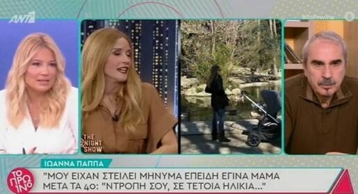 Η Φαίη Σκορδά τόνισε στον αέρα του Πρωινού: «Δεν μπορώ να σχολιάσω πώς μπορεί κάποιος να σκεφτεί… Για μένα δεν υπάρχουν όρια, είναι κάτι πολύ προσωπικό που το ορίζει κάθε γυναίκα από τις επιλογές της, από το σώμα της… Είναι μια προσωπική επιλογή που δεν χωράει κανένα σχόλιο, είτε είσαι 20, είτε είσαι 30, είτε είσαι 40, είτε είσαι 50. Είναι κάτι πολύ προσωπικό. Είτε θέλεις, είτε δεν θέλεις. Εγώ θα αποφασίσω αν θέλω να κάνω ένα παιδί ή όχι. Σε όποια ηλικία. Δεν μπορεί να μου το ορίσει κανείς άλλος.»!