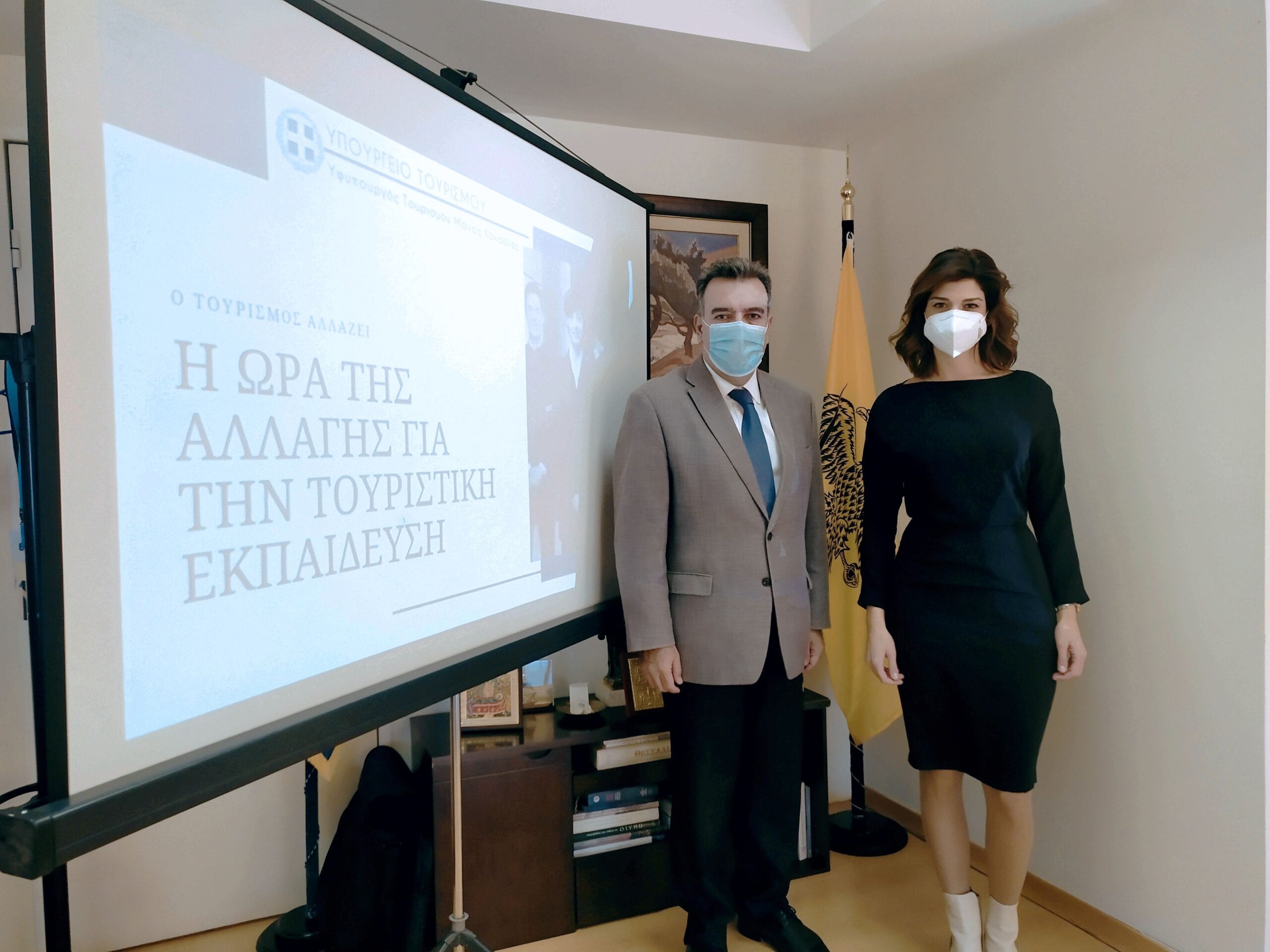 Για εμάς, ο στόχος είναι η ουσιαστική αναβάθμιση της τουριστικής εκπαίδευσης, κατάρτισης και δια βίου, ένας ευρύς κύκλος αλλαγών και ανατροπών με μεταρρυθμιστικό πρόσημο. Δημιουργούμε ένα νέο πλαίσιο τουριστικής εκπαίδευσης που περιλαμβάνει νέα προγράμματα σπουδών και σύγχρονες ειδικότητες, που έχουν αντιστοίχιση με την αγορά εργασίας».