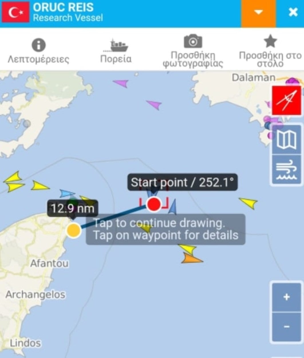 Λίγες ώρες πριν την προκλητική επίσκεψη του Ερντογάν στα κατεχόμενα Βαρώσια της Κύπρου την οποία το ελληνικό Υπουργείο Εξωτερικών και η Κυπριακή Δημοκρατία χαρακτήρισαν «πρωτοφανή πρόκληση», το τουρκικό ερευνητικό Oruc Reis βρίσκεται μία ανάσα από τη Ρόδο.