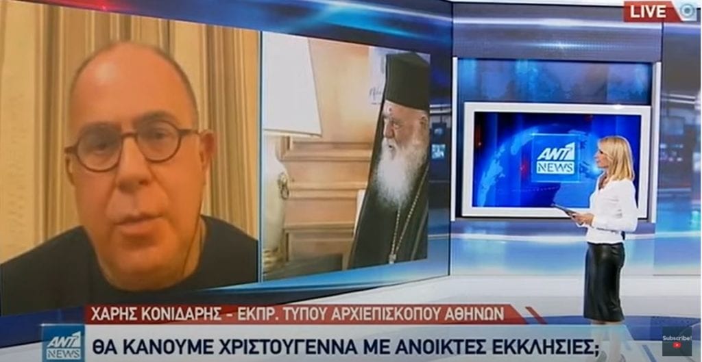 Ως εθνική δοκιμασία χαρακτήρισε τον κορωνοϊό ο εκπρόσωπος Τύπου της Αρχιεπισκοπής Αθηνών, κ. Χάρης Κονιδάρης, στο βραδινό δελτίο ειδήσεων του ΑΝΤ1, όπου μίλησε με αφορμή τη συνάντηση του πρωθυπουργού Κυριάκου Μητσοτάκη με τον Μακαριώτατο Αρχιεπίσκοπο Αθηνών κ.κ. Ιερώνυμο.