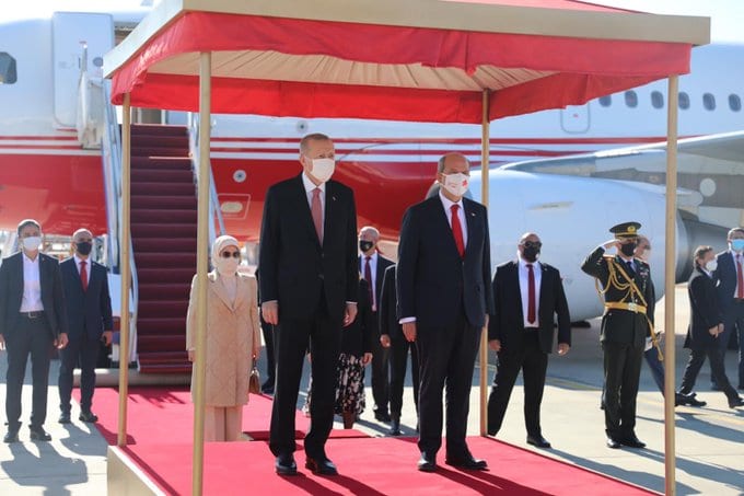 Türkiye Cumhuriyeti Cumhurbaşkanı Recep Tayyip Erdoğan ve eşi Emine Erdoğan, beraberindeki heyetle 15 Kasım Cumhuriyet Bayramı törenlerine katılmak üzere KKTC’ye geldi. pic.twitter.com/ZdwKnYs22y