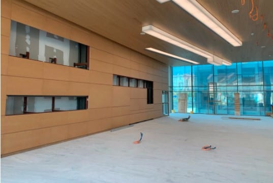 Ήδη, στο κεντρικό φουαγιέ, εκτός από τις ψευδοροφές έχουν τοποθετηθεί και οι τελικές ξύλινες επενδύσεις. Στους ορόφους έχουν τοποθετηθεί τα ξύλινα δάπεδα, όπως και το μεγαλύτερο μέρος των ψευδοροφών.