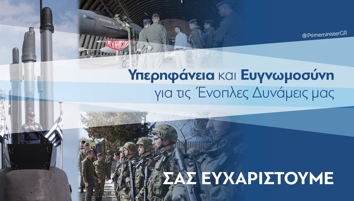 Ένα μεγάλο ευχαριστώ στα στελέχη των Ενόπλων Δυνάμεών μας που με αυταπάρνηση και αίσθηση καθήκοντος υπηρετούν την πατρίδα. Μας κάνετε περήφανους.