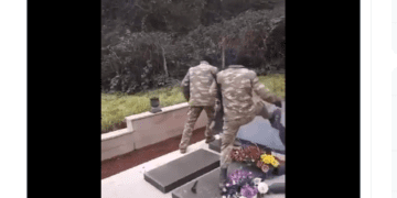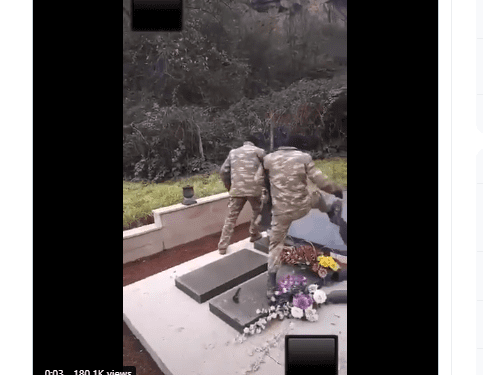 Another video showing Azerbaijani soldiers descecrating Armenian graves in Karvachar. pic.twitter.com/YVLaqQXfeo