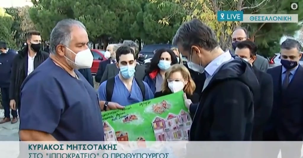 Ο πρωθυπουργός που συνομίλησε με την διοίκηση και το προσωπικό Μάλιστα, είχε ένα δώρο, μια ζωγραφιά από παιδιά της παιδοψυχιατρικής κλινικής του Ιπποκρατείου νοσοκομείου. Ο κ. Μητσοτάκης ευχαρίστησε για το δώρο και εξήρε το έργο που γίνεται στη συγκεκριμένη πτέρυγα του νοσοκομείου.