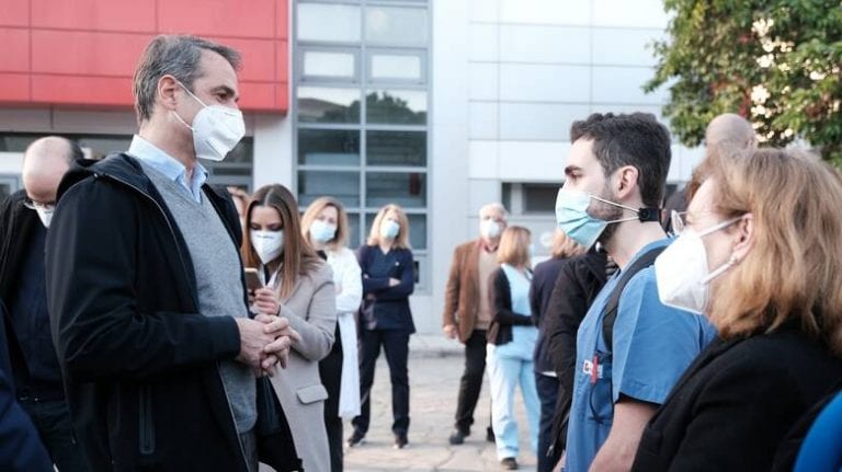 «Κάνετε όλοι σας σπουδαία δουλειά, σας είμαστε όλοι βαθιά υποχρεωμένοι» είπε ο κ. Μητσοτάκης μιλώντας σε γιατρούς του νοσοκομείου. «Όλη η ελληνική κοινωνία στέκεται με σεβασμό απέναντι στο ιατρικό και νοσηλευτικό προσωπικό. Το ΕΣΥ πιέστηκε και πιέζεται όμως άντεξε και θα αντέξει» συμπλήρωσε.