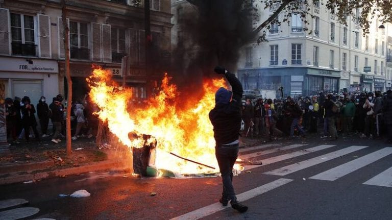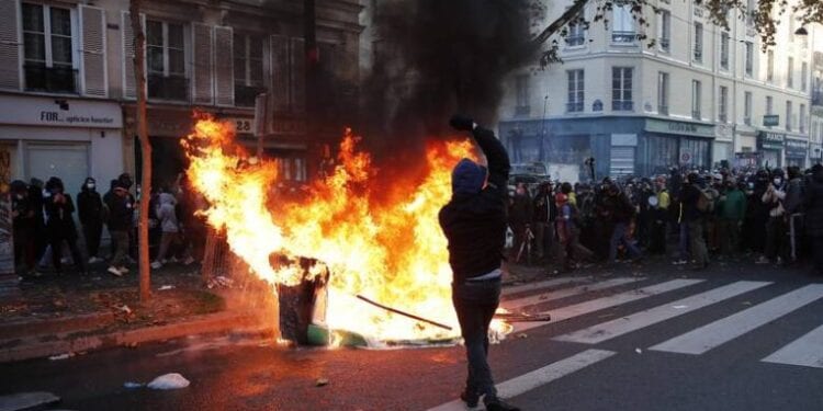 Δεκάδες κουκουλοφόροι πέταξαν αντικείμενα εναντίον των αστυνομικών δυνάμεων, έσπασαν βιτρίνες καταστημάτων, πυρπόλησαν αυτοκίνητα και έβαλαν φωτιά σε οδοφράγματα κατά τη διάρκεια της διαδήλωσης στο Παρίσι κατά της αστυνομικής βίας.