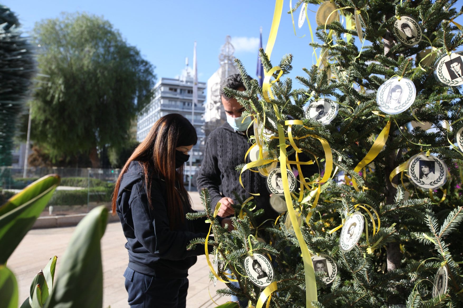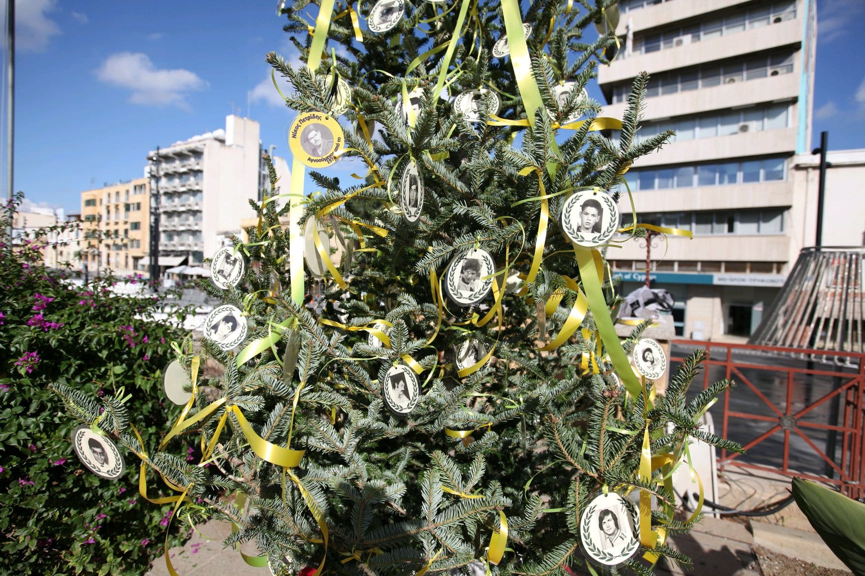 Ένα χριστουγεννιάτικο δέντρο χωρίς πολύχρωμες και λαμπερές μπάλες αλλά με μικρές φωτογραφίες ανθρώπων που η τύχη τους χάθηκε το «μαύρο» εκείνο καλοκαίρι του ’74, με την τουρκική εισβολή .