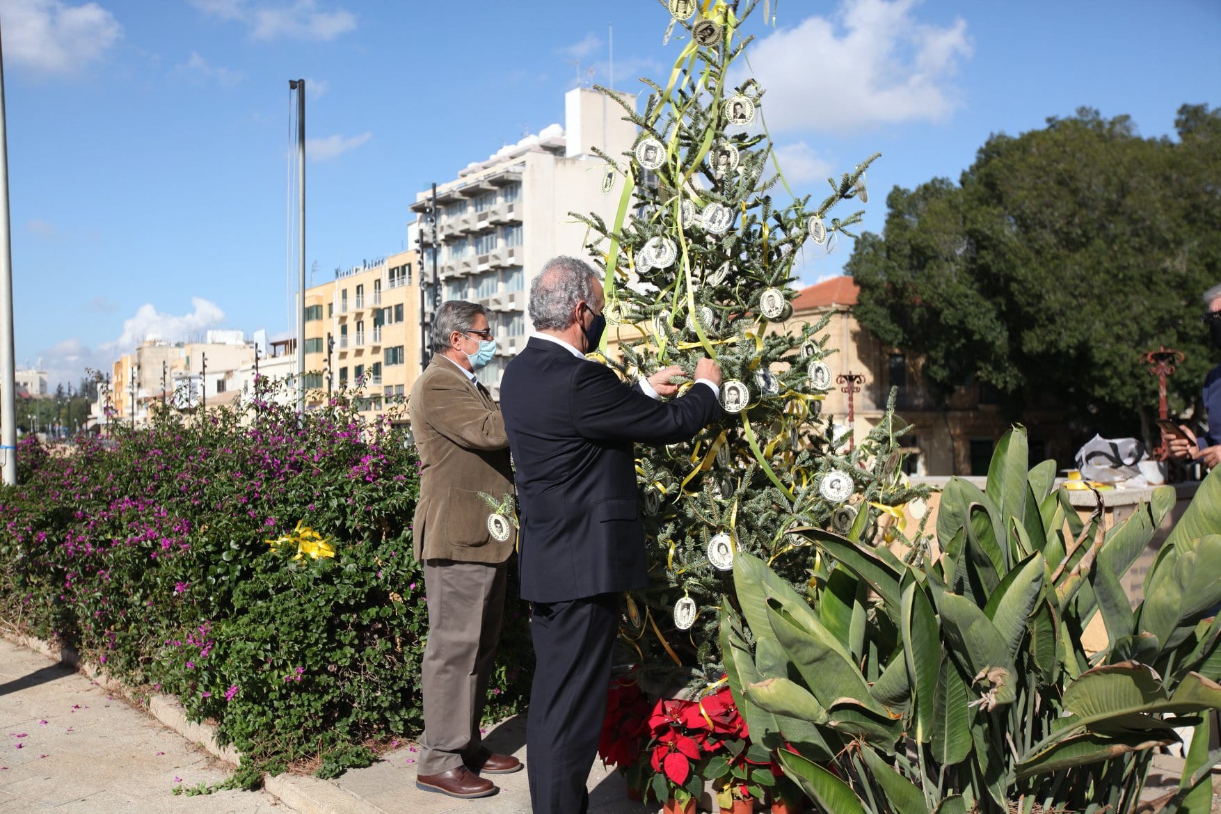 Σήμερα, πραγματοποιήθηκε το καθιερωμένο στόλισμα του Χριστουγεννιάτικου Δέντρου για τους Αγνοούμενους στο προαύλιο του παλαιού Δημαρχείου Λευκωσίας στην Πλατεία Ελευθερίας, που διοργάνωσε η Παγκύπρια Οργάνωση Συγγενών Αδήλωτων Αιχμαλώτων και Αγνοουμένων σε συνεργασία με τον Επίτροπο Προεδρίας κ. Φώτη Φωτίου και την Ομάδα Εθελοντών Πεζοπόρων Ραδιομαραθωνίου.