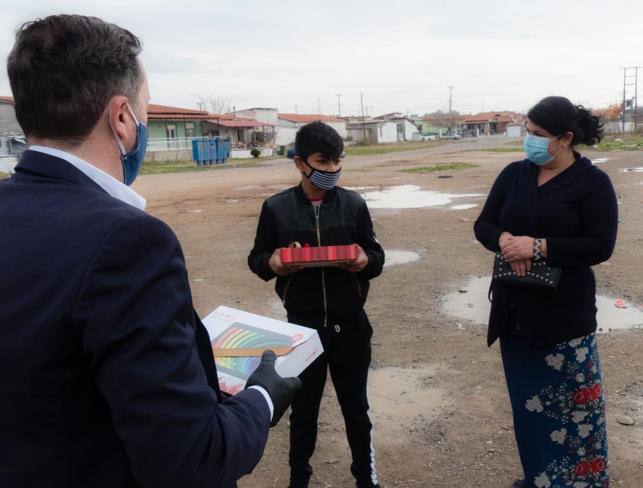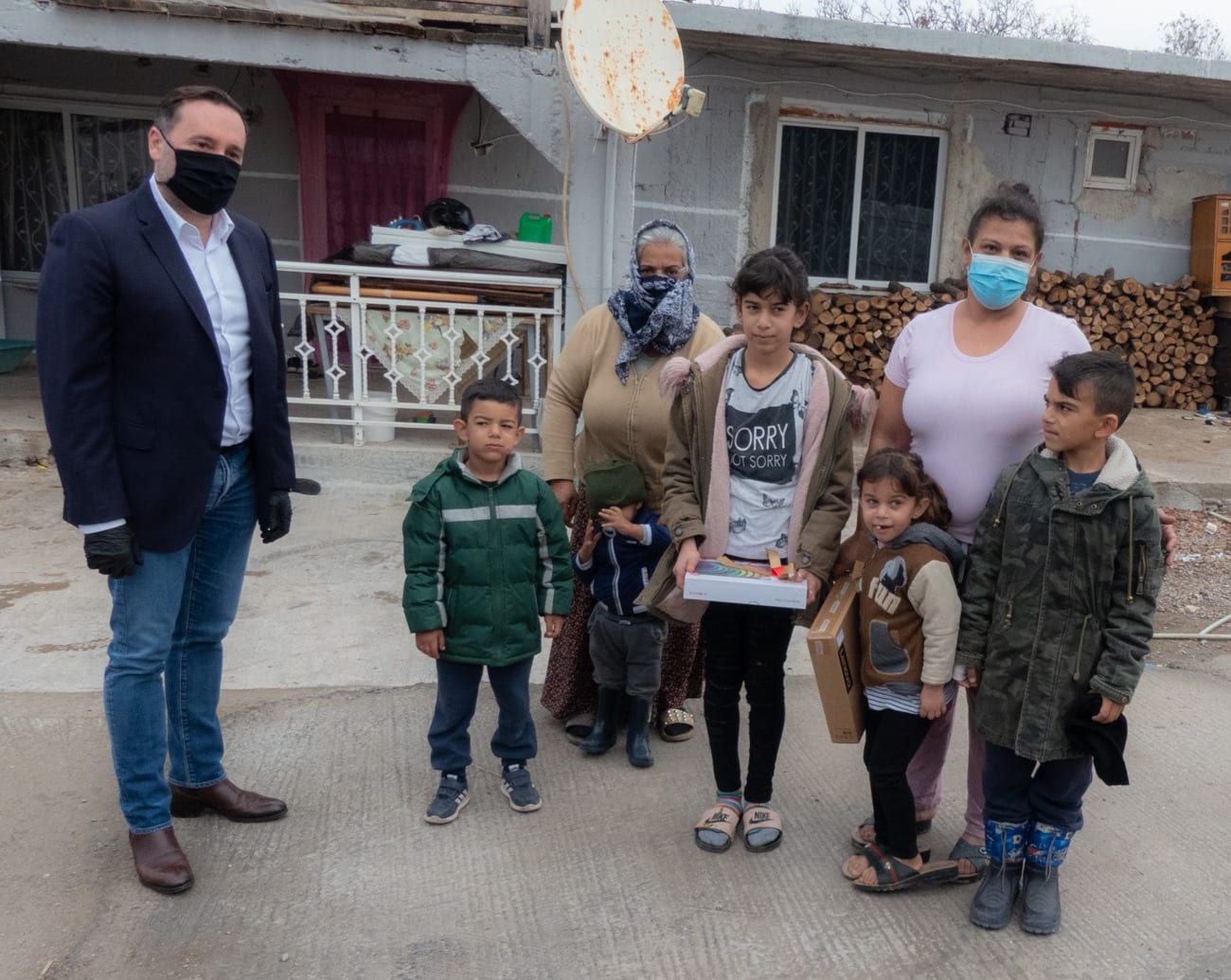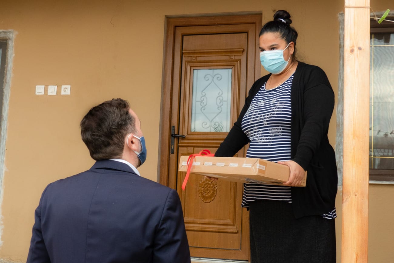 Ο Δήμαρχος παρέδωσε προσωπικά τα Laptop, τα Tablet και τα Smartphones στους τυχερούς και αντάλλαξε ευχές με τις οικογένειες τους.