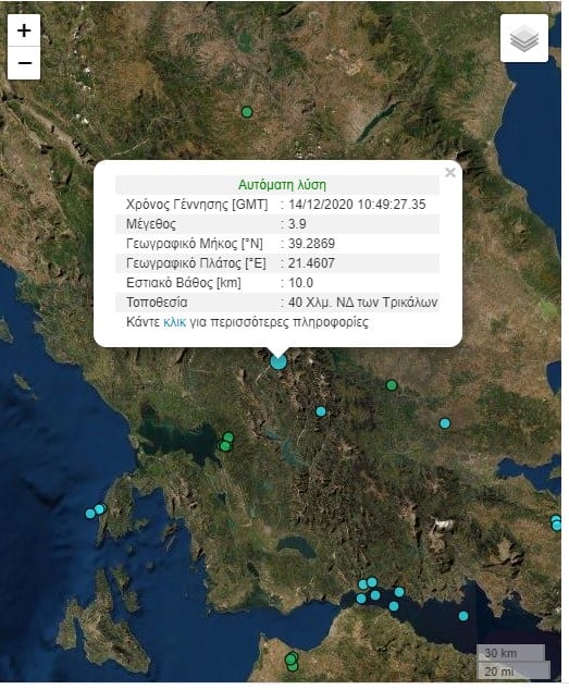 Σεισμός σημειώθηκε στισ 10:49 κοντά στα Τρίκαλα.