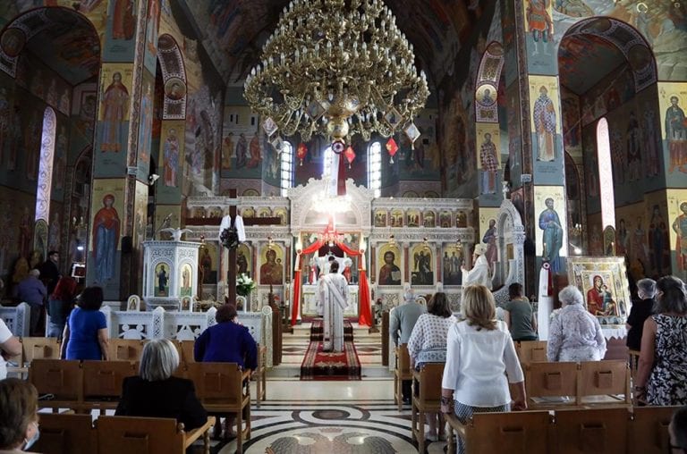 -Με 25 άτομα στους Ενοριακούς Ναούς και με 50 άτομα στους Μητροπολιτικούς Ναούς, με υποχρεωτική χρήση μάσκας.