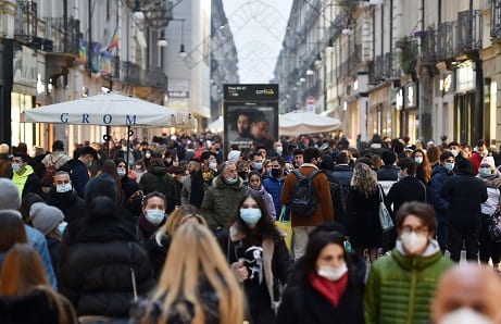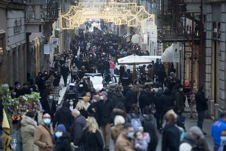 Βουλιάζει η αγορά του Τορίνο στη Βόρεια Ιταλία, που παρόλο την έξαρση με χιλιάδες καθημερινά κρούσματα και εκατοντάδες θανάτους, χιλιάδες κάτοικοι ξεχύθηκαν στην στολισμένη πόλη για τα χριστουγεννιάτικα ψώνια και ένα διάλειμμα στα γραφικά καφέ.