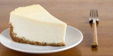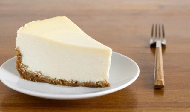 - Χτυπάτε τα ασπράδια σε μαρέγκα και τα ενσωματώνετε και αυτά στο μείγμα του τυριού με απαλές κινήσεις. Αδειάζετε το μείγμα πάνω στη βάση μπισκότου και βάζετε στο ψυγείο να παγώσει. Κόβετε το cheesecake σε τριγωνικά κομμάτια γαρνίρετε με το βύσσινο (προαιρετικά) και την υπόλοιπη σαντιγί και σερβίρετε.