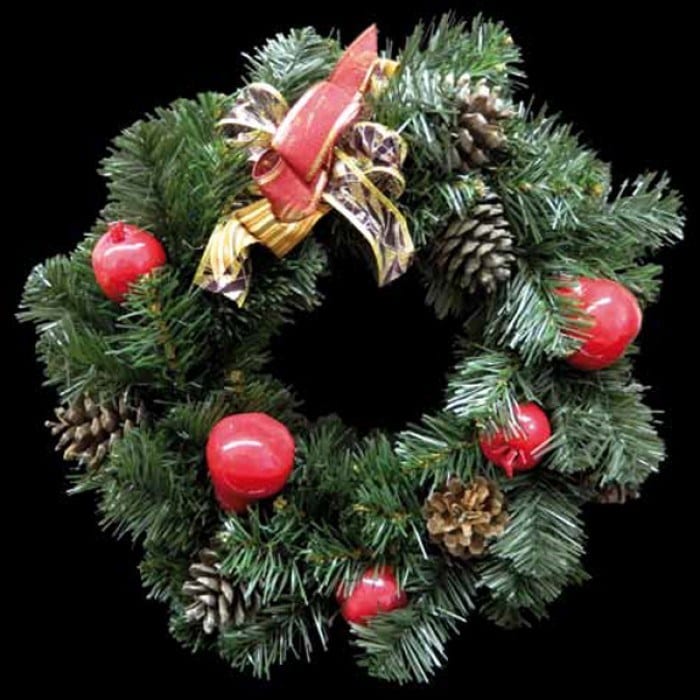 Την εξώπορτα των σπιτιών κοσμεί, επίσης, ένα στεφάνι από έλατο, διακοσμημένο με χριστουγεννιάτικα στολίδια. Σύμφωνα με την παράδοση, το στεφάνι φέρνει τύχη στους ενοίκους του σπιτιού.