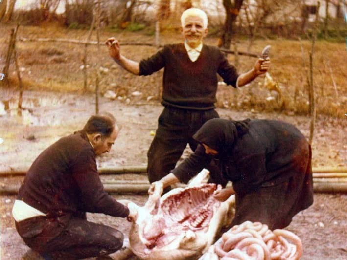 Τρεις τέσσερις συγγενικές οικογένειες καθορίζουν με ποια σειρά θα σφάξουν το γουρούνι τους. Για κάθε σφαγή μεγάλου γουρουνιού απαιτούνται 5 με 6 άνδρες.