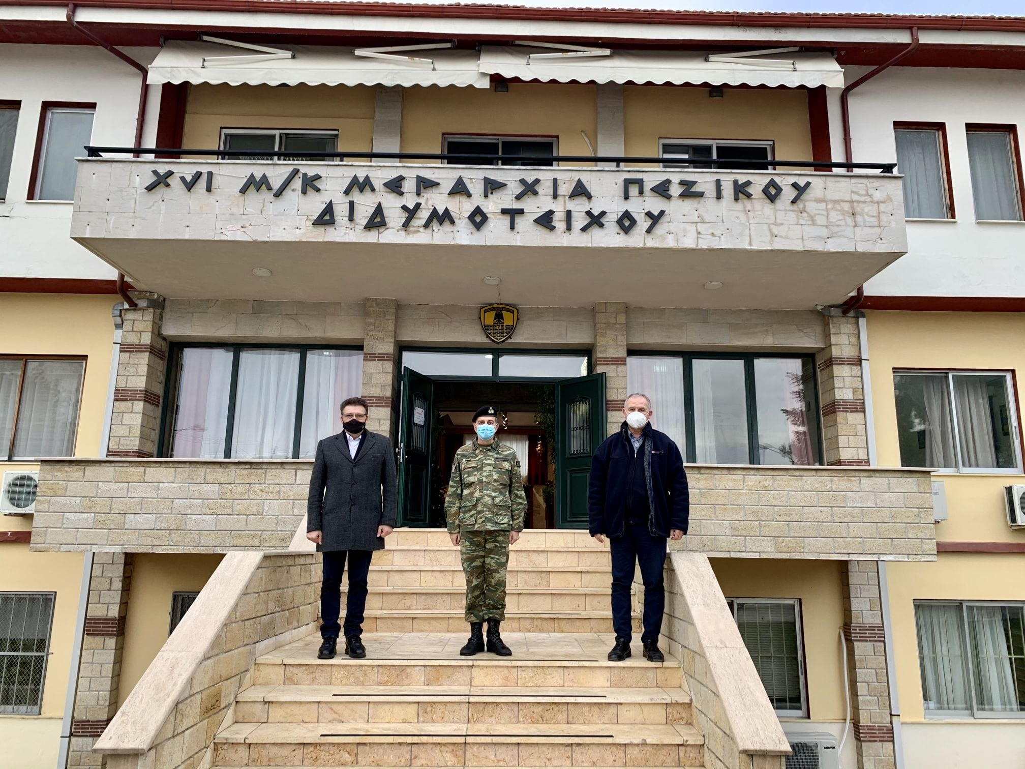 - Στον Στρατηγό Διοικητή της ΧΙΙ Μηχανοκίνητης Μεραρχίας Πεζικού «ΕΒΡΟΣ» Χρήστο Μπούφη, στον οποίο παρέδωσε γλυκά συμβολικά για τα Στρατιωτικά Φυλάκια των Κήπων και των Πλατιών